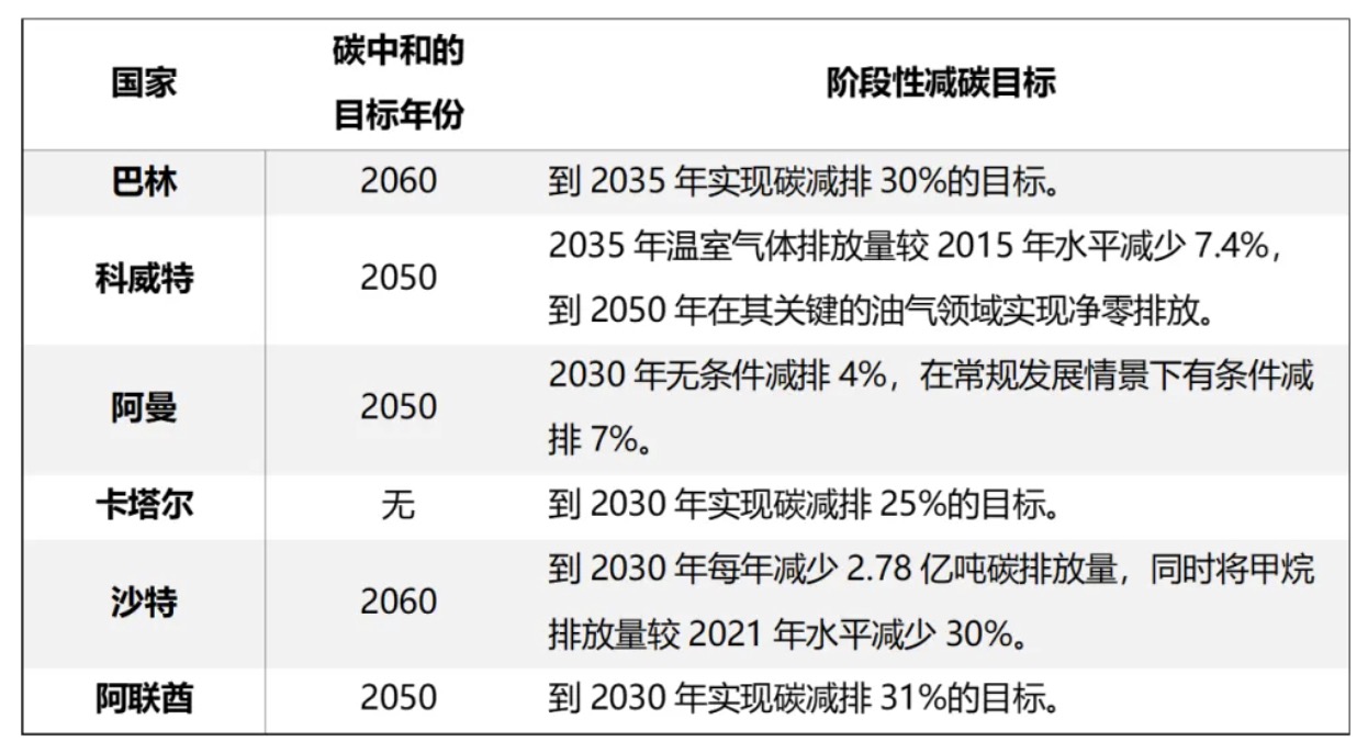 表1:海合会国家的减碳承诺3